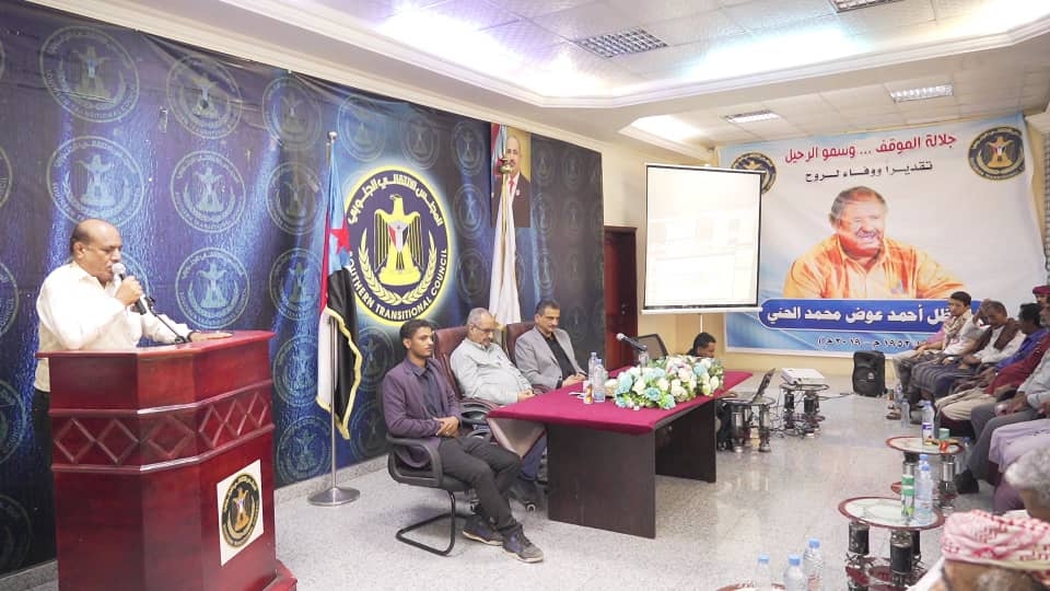 اقام المجلس الانتقالي الجنوبي ممثلا بجمعيته الوطنية حفل تأبين للفقيد المناضل احمد عوض الحني عضو الجمعية الوطنية اليوم الخميس وذلك بمقر الأمانة العامة للمجلس.