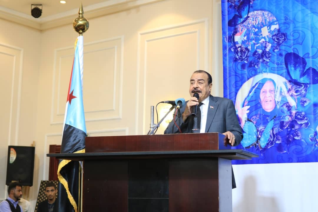 وفي الحفل الذي حضره اللواء سالم السقطري مساعد الأمين العام لهيئة رئاسة المجلس الانتقالي، والمحامية نيران سوقي، نائب رئيس الجمعية الوطنية، والدكتورة منى باشراحيل، والأستاذ علي الشيبة، عضوا هيئة رئاسة المجلس، والدكتور عبدالعزيز الدالي مستشار رئيس المجلس للشؤون الخارجية، وقيادات وشخصيات نسوية ومؤسسات ومنظمات مجتمعية وحشد كبير من مختلف محافظات الجنوب، ألقى اللواء أحمد سعيد بن بريك، كلمة نقل في مستهلها تهاني الرئيس عيدروس الزُبيدي، رئيس المجلس الانتقالي، وباقي أعضاء هيئة رئاسة المجلس، لكل نساء الجنوب اللواتي جئن من كل مناطق الجنوب للاحتفال بهذه المناسبة.