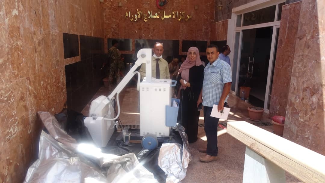وشملت الدفعة الأولى من هذه المعدات المقدمة من منظمة الصحة العالمية، التي تسلمها الدكتور زكريا القعيطي، رئيس مركز الأمل والدكتور عباس الحالمي المشرف الفني بالمركز، جهاز للأشعة، وأجهزة تخطيط القلب متعددة القنوات مع ملحقات مراقبة المريض، وبعض المعدات الأخرى.