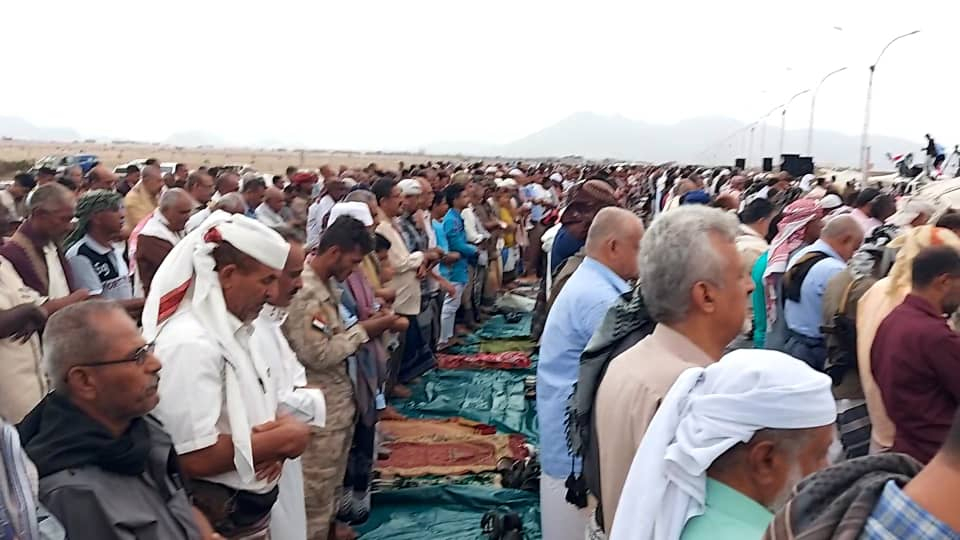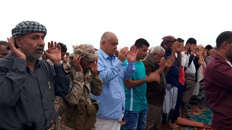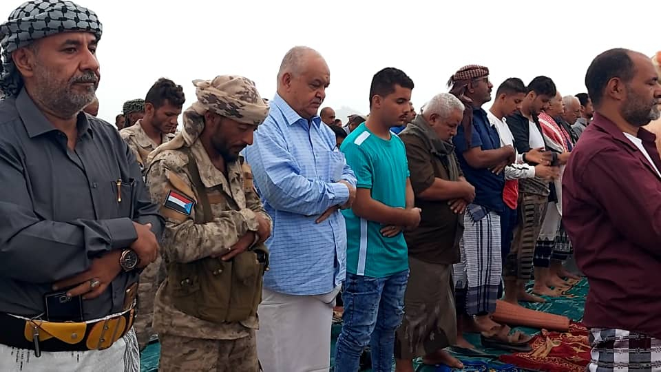 أدى الأستاذ فضل محمد الجعدي، مساعد الأمين العام لهيئة رئاسة المجلس الانتقالي الحنوبي، ومعه الدكتور عبدالناصر الوالي، عضو هيئة رئاسة المجلس، رئيس القيادة المحلية بالعاصمة عدن، صباح اليوم الجمعة، صلاة عيد الأضحى المبارك مع جموع المعتصمين من منتسبي الجيش والأمن الجنوبيين، في مخيم إعتصامهم أمام مقر قوات التحالف العربي في مدينة البريقة.