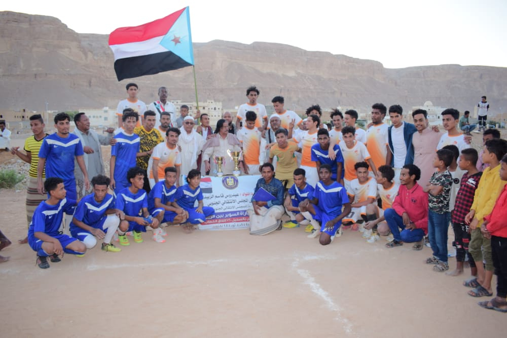 رعت القيادة المحلية للمجلس الانتقالي الجنوبي بمديرية سيئون، مباراة كأس السوبر لكرة القدم بين فريقي اتفاق الخطاب والعين بالسحيل، والذي احتضنه ملعب التضامن بمنطقة جثمة.