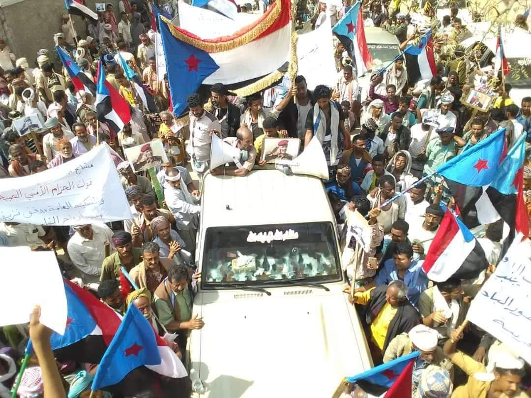 وتقدم المظاهرة أركان حرب اللواء التاسع صاعقة العقيد محمود الاغبري وقائد الشرطة العسكرية في الساحل الغربي العقيد بسام الحرق ورؤساء الهيئات التنفيذية للقيادات المحلية للانتقالي في طورالباحة وكرش والمضاربة وعدد من المشائخ والأعيان والقيادات الأمنية والعسكرية .