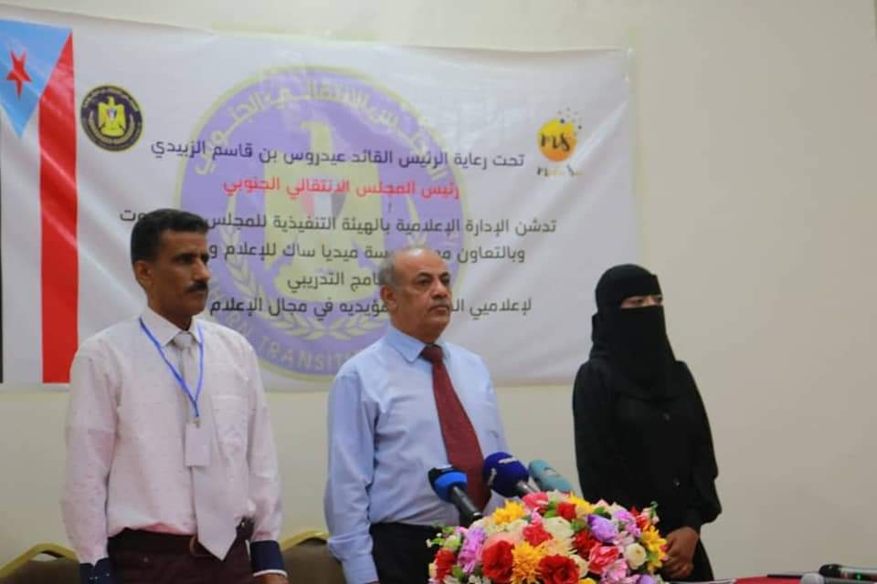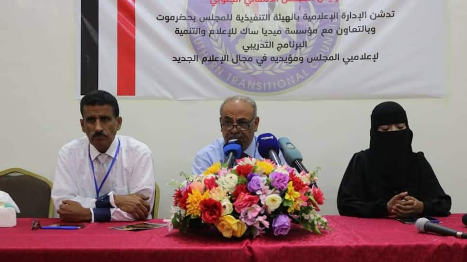 دشنت الإدارة الإعلامية بالهيئة التنفيذية للقيادة المحلية للمجلس الانتقالي الجنوبي بمحافظة حضرموت، بقاعة فندق مكة بالمكلا، اليوم الاثنين، البرنامج التدريبي لمديري الإدارات الإعلامية ومساعديهم في مختلف مديريات المحافظة، والذي تنفذه مؤسسة "ميديا ساك" للإعلام والتنمية.