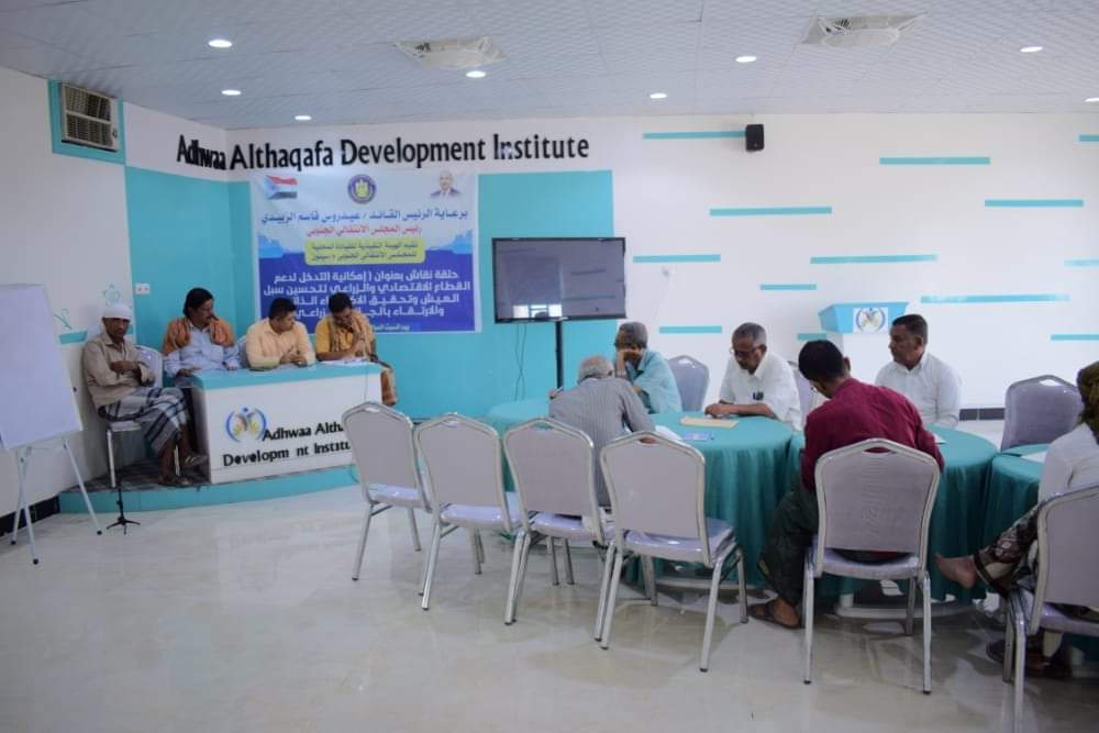 نظمت الهيئة التنفيذية للقيادة المحلية للمجلس الانتقالي الجنوبي بمديرية سيئون اليوم السبت حلقة نقاش حول "إمكانية التدخل لدعم القطاع الاقتصادي والزراعي وتحسين سُبل العيش وتحقيق الاكتفاء الذاتي والارتقاء بالجانب الزراعي" بحضور عدد من مديري الإدارات في الهيئة المساعدة بالوادي والصحراء والهيئة التنفيذية بمديرية سيئون.