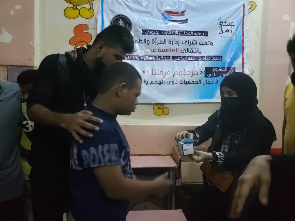 وخلال اول ايام تدشين المشروع السنوي الثاني والتي يشرف عليه إدارة المرأة والطفل بتنفيذية انتقالي العاصمة عدن، تم توزيع الهداية للأطفال ذوي الهمم في جمعيتي الرحمة والفجر الجديد ومشاركتهم فرحة حلول عيد الفطر المبارك.