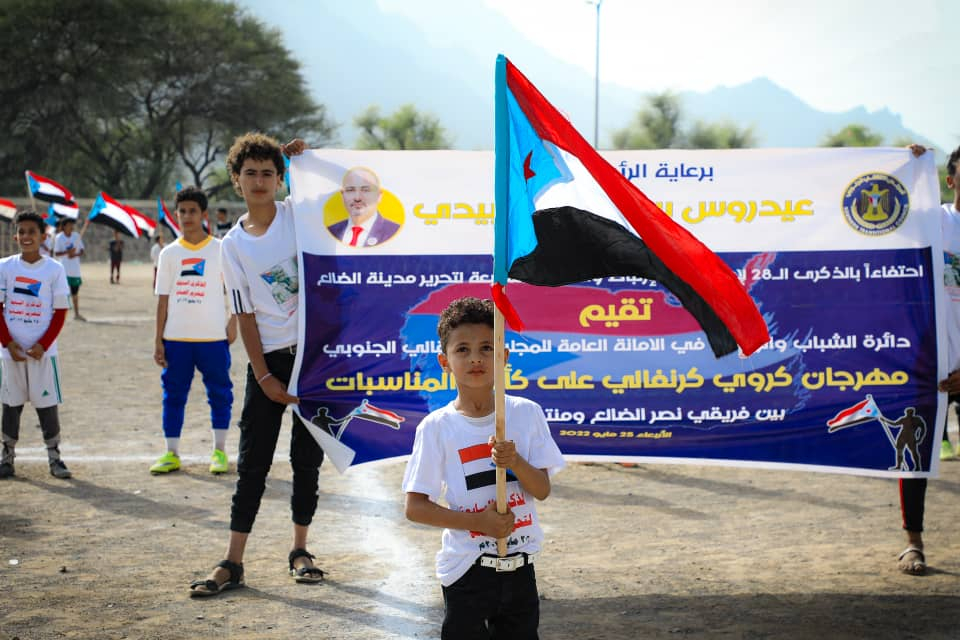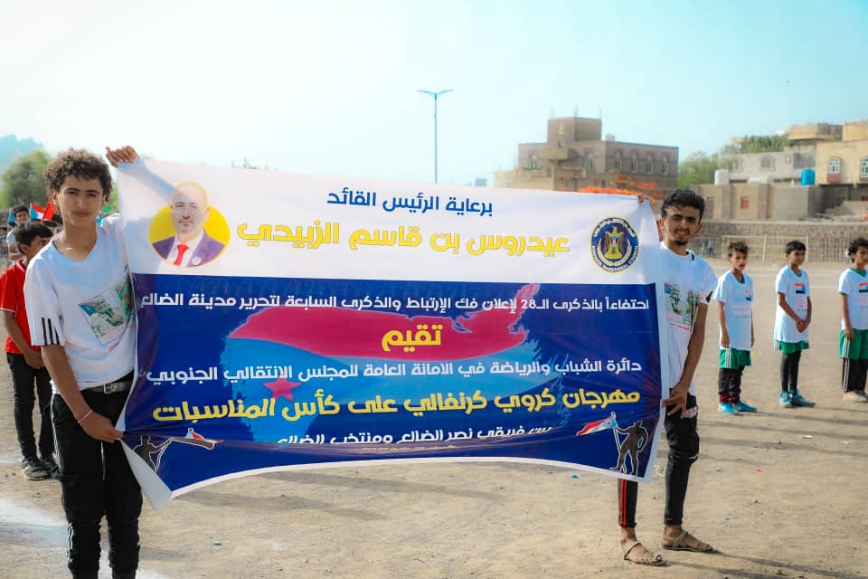 أقيم اليوم الأربعاء في محافظة الضالع مهرجان كرويا كرنفالي بمناسبة الذكرى السابعة لانتصار الضالع وتحريرها من المليشيات الحوثية العفاشية، نظمته إدارة الشباب والطلاب في الهيئة التنفيذية بالقيادة المحلية للمجلس الانتقالي الجنوبي، على ملعب نادي الصمود، برعاية دائرة الشباب والطلاب في الأمانة العامة لهيئة رئاسة المجلس الانتقالي الجنوبي.