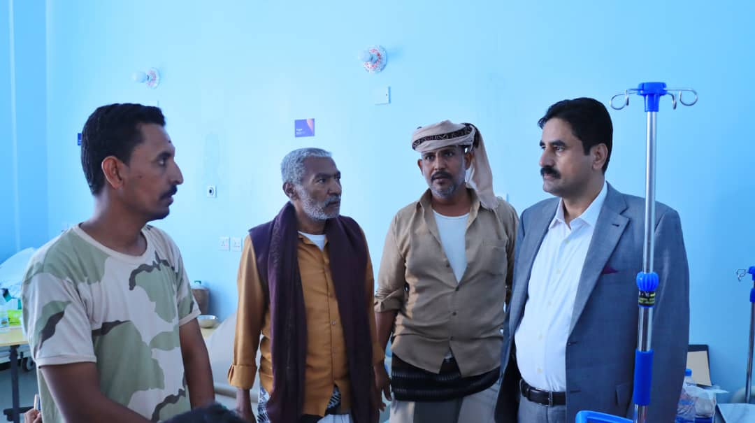 واطلع الجبواني على الحالة الصحية للرائد ماجد صالح لمروق أركان اللواء الثاني قوات دفاع شبوة وبقية الجرحى في هيئة مستشفى شبوة ومستشفى عافية، متمنيا لهم الصحة والسلامة والشفاء.