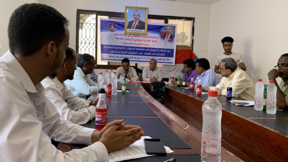 نظمت الإدارة الإعلامية لمنسقية المجلس الانتقالي الجنوبي في جامعة عدن، اليوم الخميس، بمقر المنسقية في العاصمة عدن، ندوة علمية حول "دور الإعلام الجنوبي في مجابهة الحملات الإعلامية المعادية الهادفة إلى القضاء على المشروع السيادي الجنوبي".