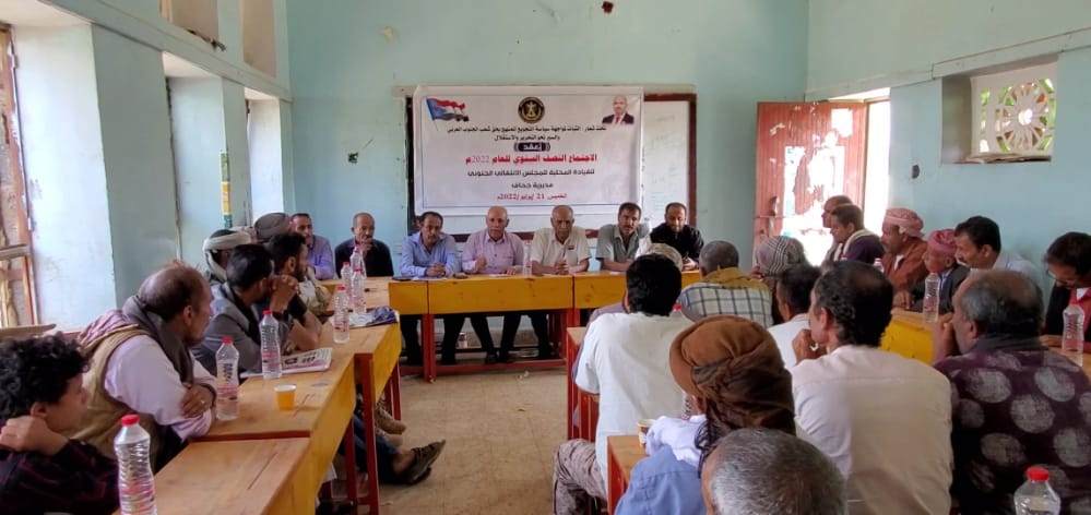 عقدت الهيئة التنفيذية للمجلس الانتقالي الجنوبي في مديرية جحاف بمحافظة الضالع، اليوم الخميس، اجتماعها النصف السنوي من العام الجاري 2022، برئاسة العميد عبد الله مهدي، رئيس الهيئة.