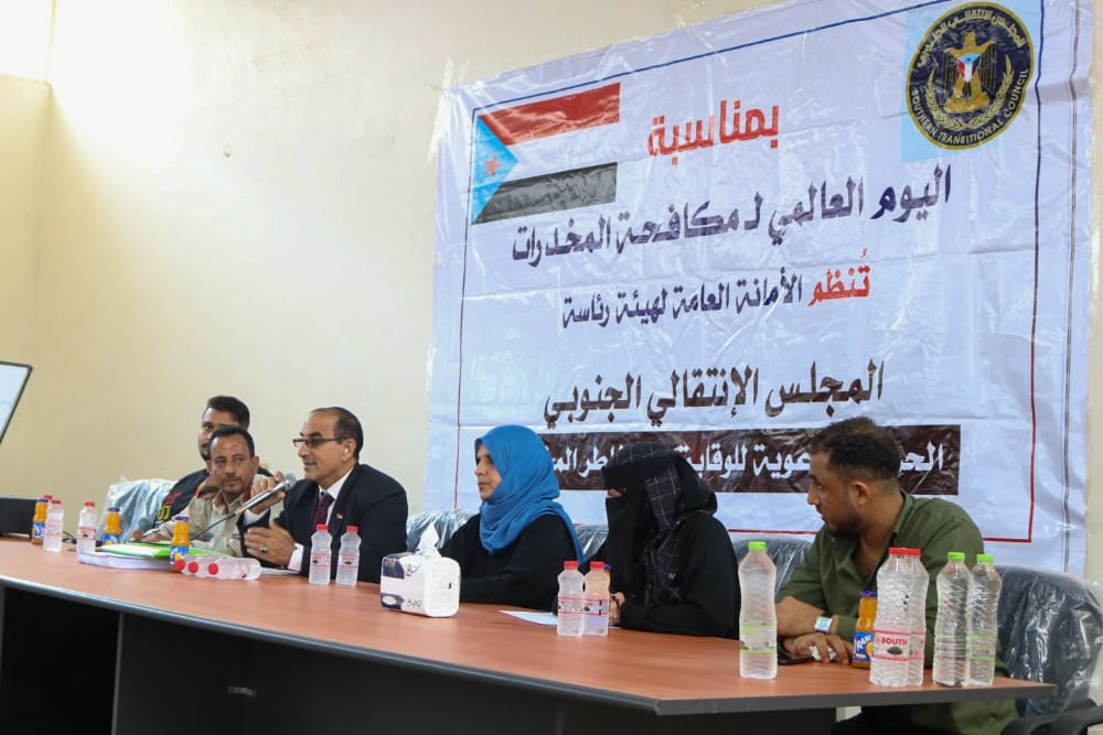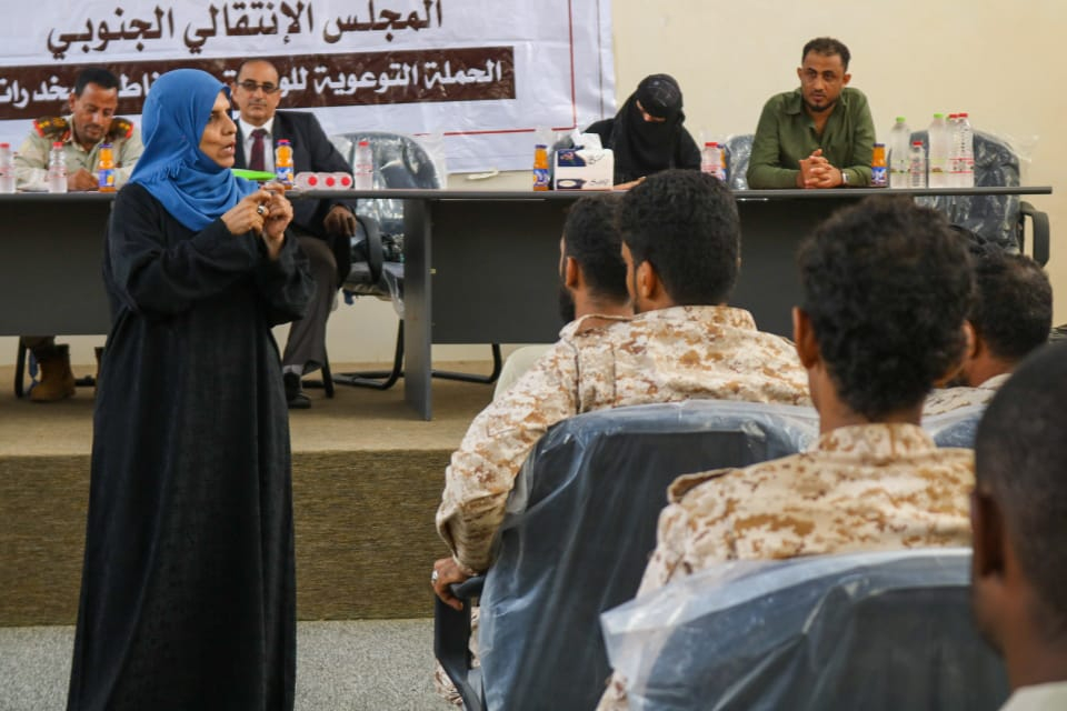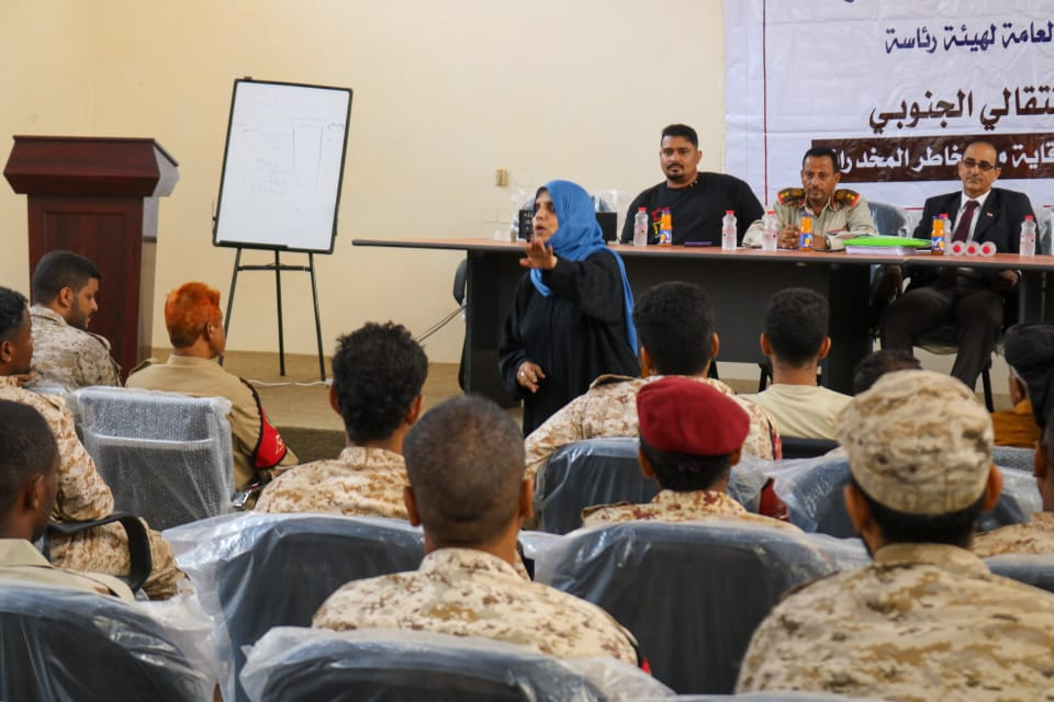 نظمت الدائرة القانونية في الأمانة العامة لهيئة رئاسة المجلس الانتقالي الجنوبي ، اليوم الخميس ، ندوة توعوية للوقاية من خطر المخدرات، استهدفت أفراد الشرطة العسكرية بالعاصمة عدن.