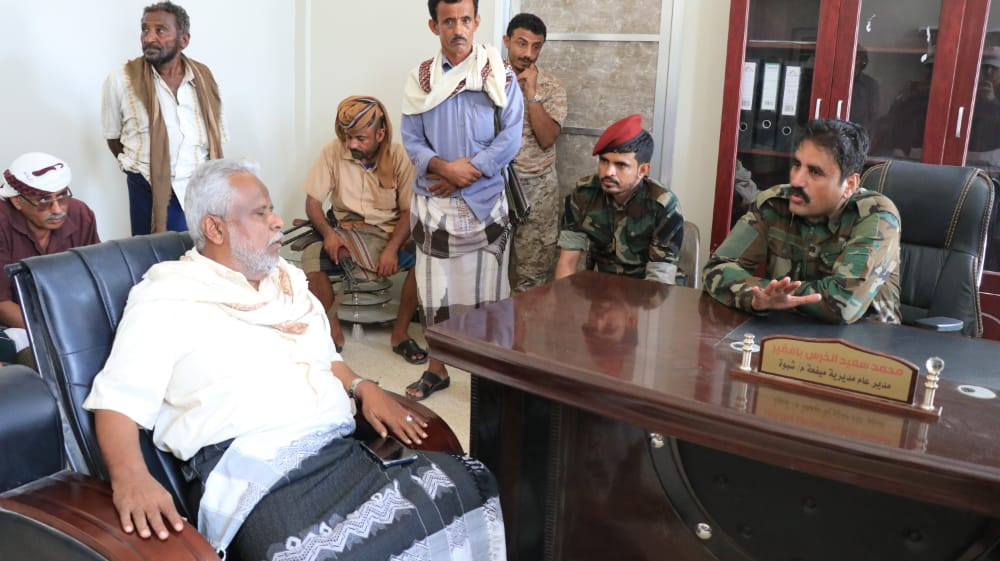 وقام رئيس انتقالي شبوة بزيارة مقر الإدارة المحلية بعاصمة مديرية ميفعة مدينة جول الريدة، حيث التقى مدير عام المديرية محمد سعيد الخرس، مستعرضاً سير عمل السلطة المحلية بالمديرية، والصعوبات والهموم التي يعاني منها أبناء المديرية.