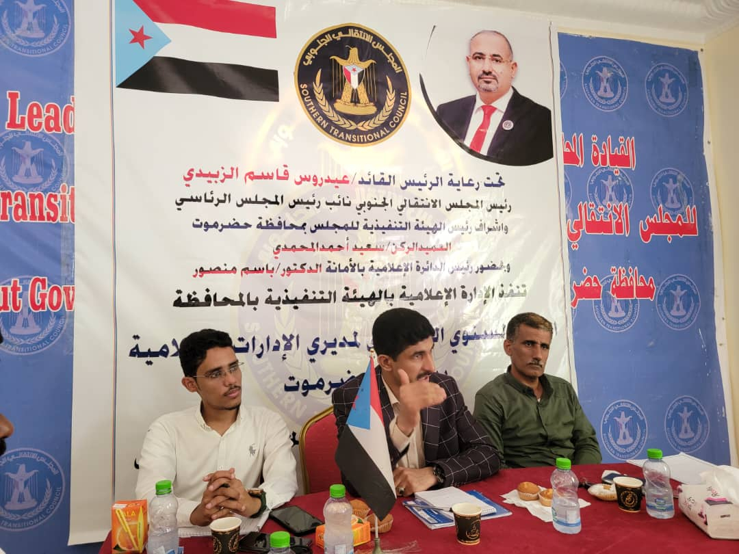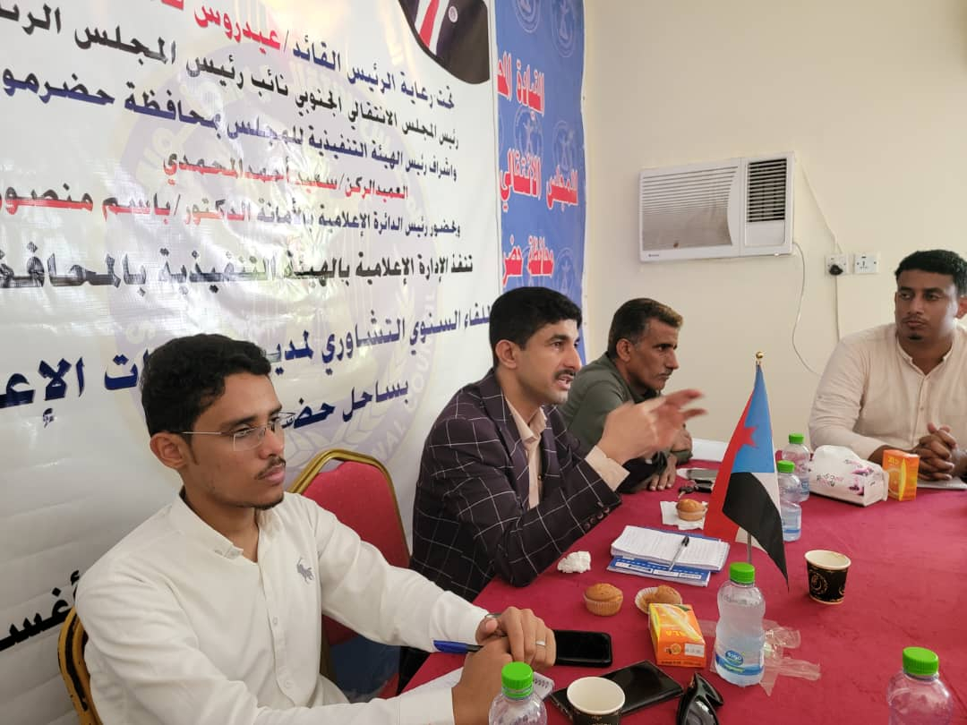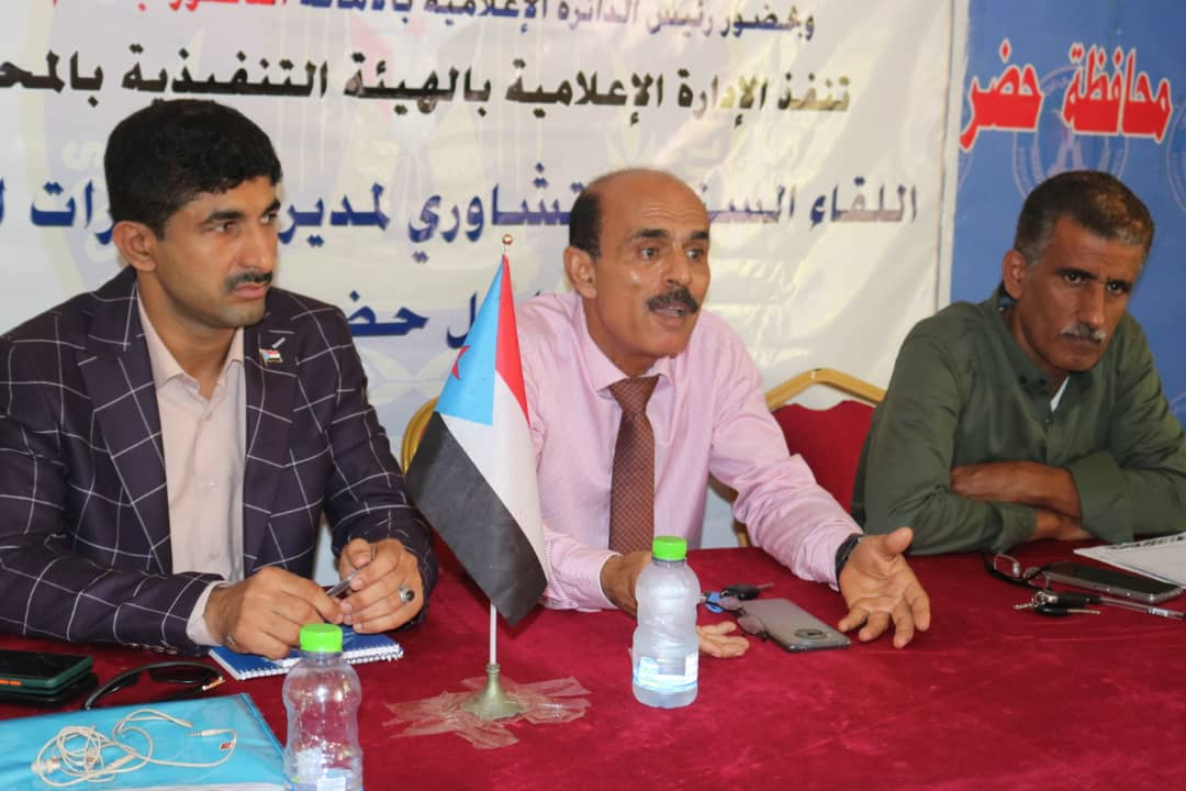 عقدت الدائرة الإعلامية في الأمانة العامة لهيئة رئاسة المجلس الانتقالي الجنوبي ، اليوم الخميس ، لقاءً تشاورياً مع مدراء الإدارات الإعلامية في مديريات ساحل حضرموت .