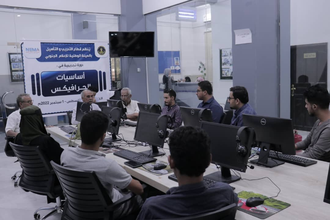دشن قطاع التدريب والتأهيل في الهيئة الوطنية للإعلام الجنوبي، اليوم الاحد، بالعاصمة عدن دورة تدريبية في أساسيات الجرافيكس لعدد من كوادر المجلس الانتقالي والنشطاء الإعلاميين الجنوبيين.
