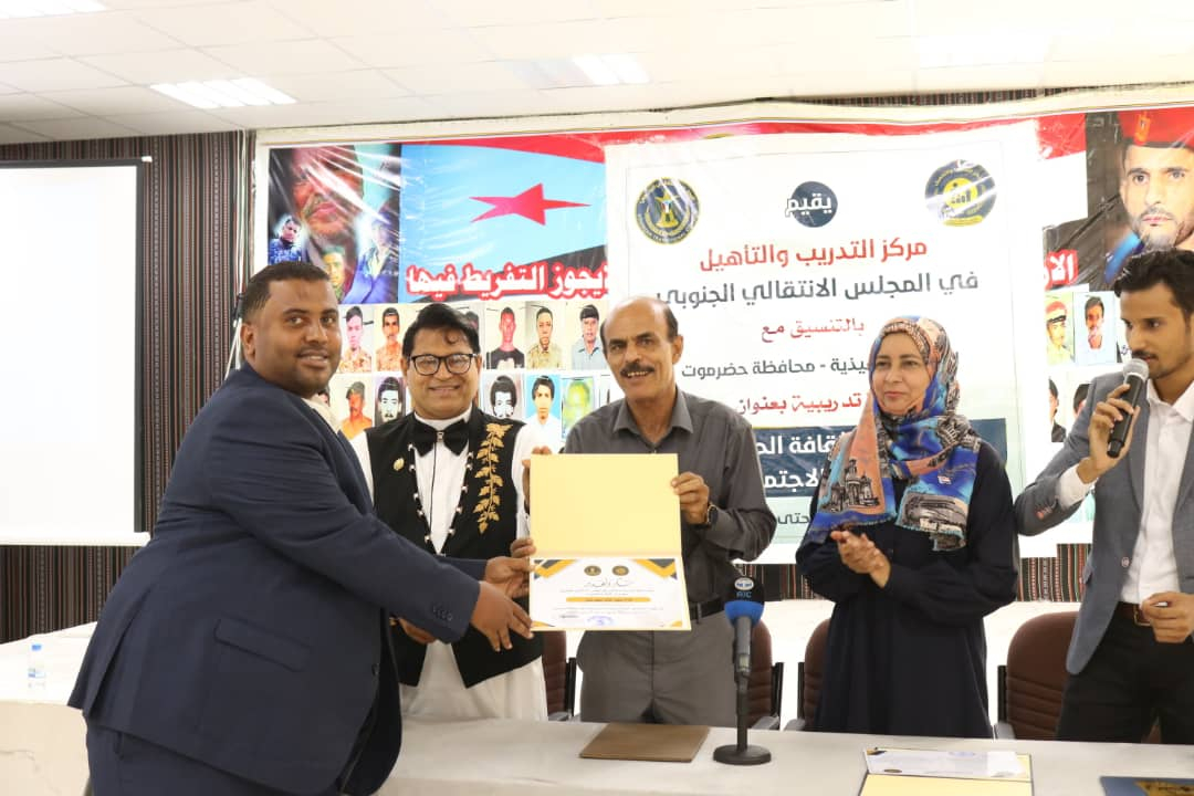 اختتمت بمدينة المكلا، اليوم الأحد، الدورة التدريبية في مجال بناء السلام، وثقافة الحوار، وتعزيز التماسك الاجتماعي، التي نظمها مركز التدريب والتأهيل في المجلس الانتقالي الجنوبي، بالتعاون مع الهيئة التنفيذية لانتقالي بمحافظة حضرموت.