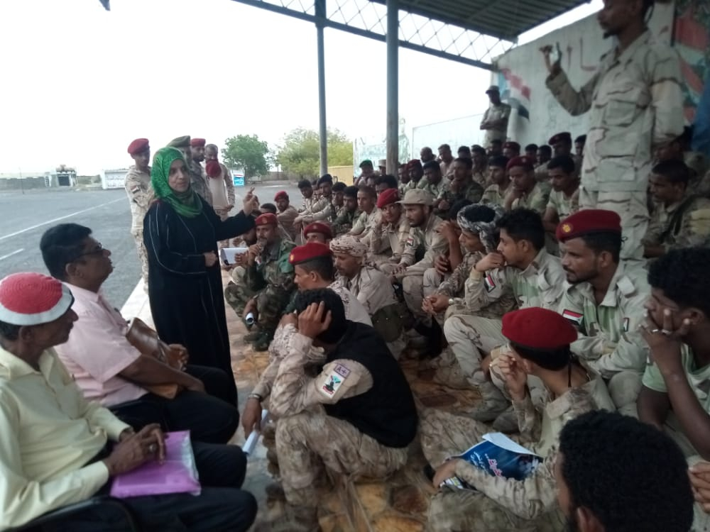 شارك في المحاضرة العقيد حمود صالح اركان اللواء لشؤون الامداد والتموين، والأستاذ علي الجمل رئيس تنظيمية انتقالي البريقة .