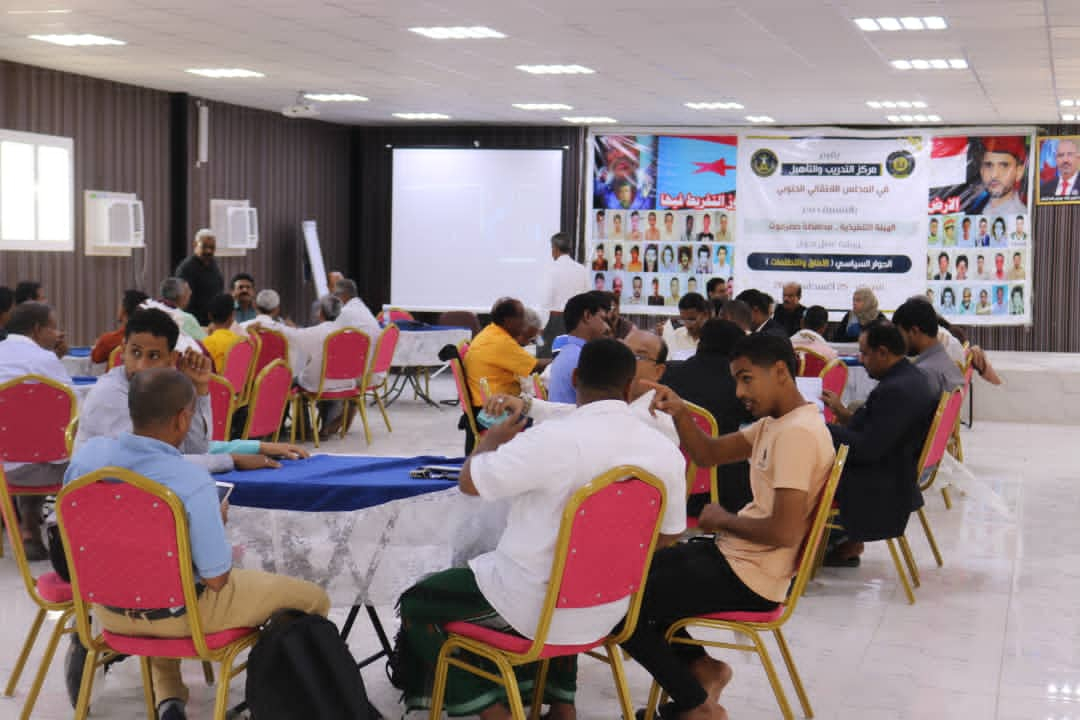 نظم مركز التدريب والتأهيل في المجلس الانتقالي الجنوبي، بمدينة المكلا، اليوم الخميس، بالتنسيق مع الهيئة التنفيذية لانتقالي حضرموت، ورشة عمل سياسية عن الحوار السياسي الجنوبي وتطلعاته وآفاقه.