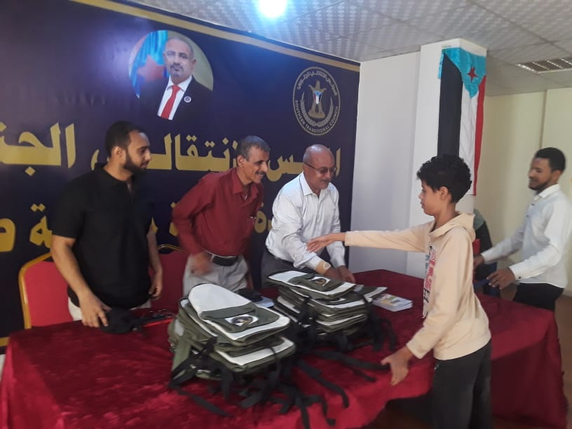 وزعت إدارة الفكر والإرشاد بالقيادة المحلية للمجلس الانتقالي الجنوبي في مديرية صيرة، بالعاصمة عدن، اليوم السبت، حقائب مدرسية للطلبة الأشد احتياجاً في المديرية.