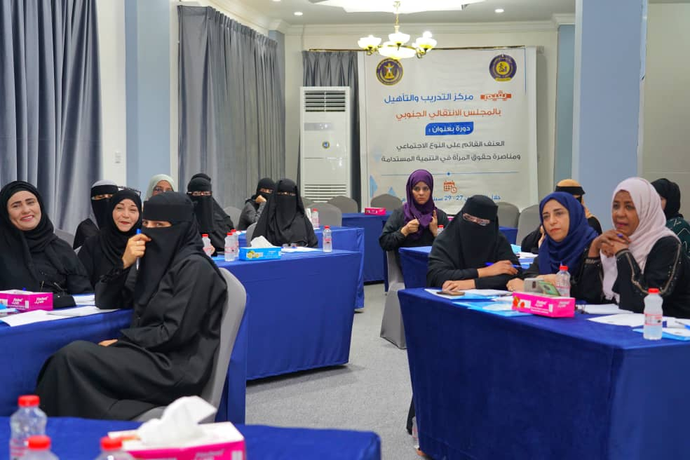 دشن مركز التدريب والتأهيل في المجلس الانتقالي الجنوبي، اليوم الثلاثاء، في العاصمة عدن، الدورة التدريبية التي نظمها بعنوان " العنف القائم على النوع الاجتماعي ومناصرة حقوق المرأة في التنمية المستدامة"