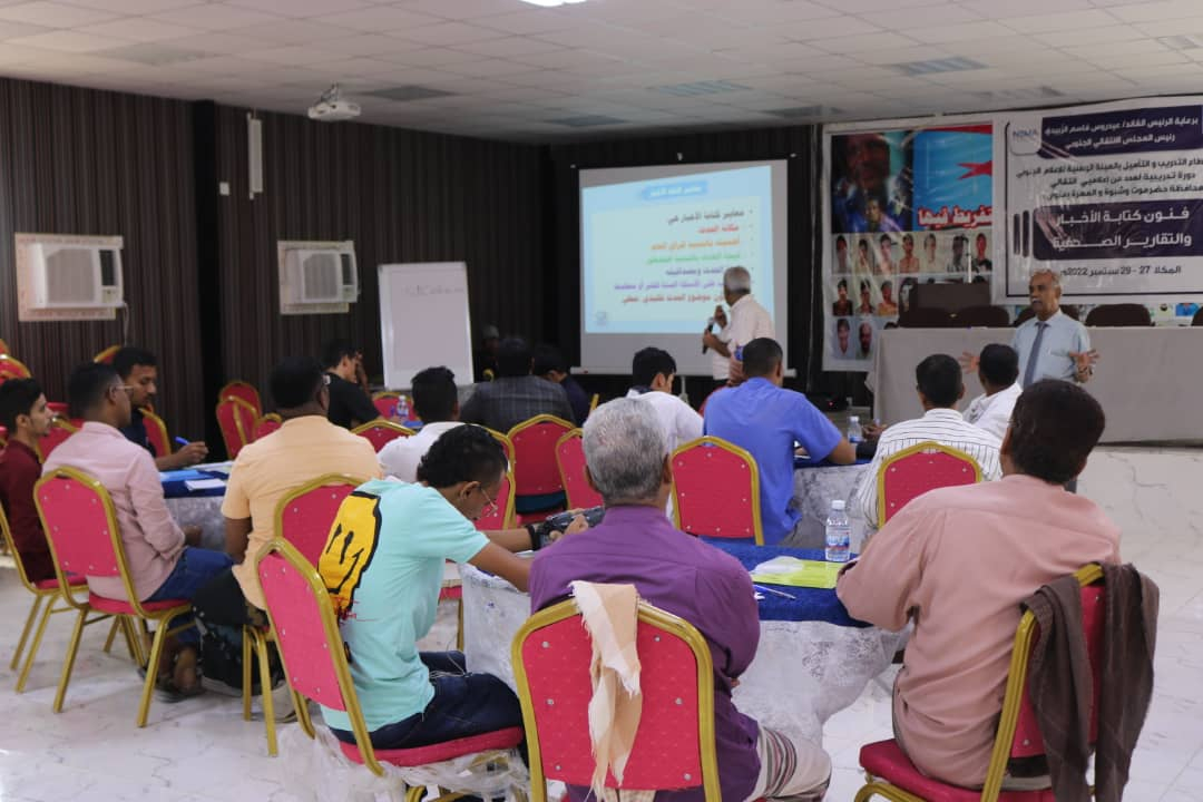 دشن قطاع التدريب والتأهيل بالهيئة الوطنية للإعلام الجنوبي، اليوم الثلاثاء، في مدينة المكلا دورة تدريبية في كتابة الأخبار والتقارير الصحفية، لعدد من اعلاميي انتقالي محافظات حضرموت وشبوة والمهرة.