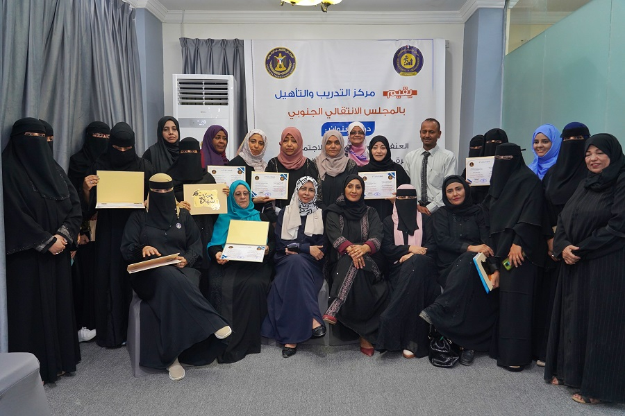 اختتم مركز التدريب والتأهيل بالمجلس الانتقالي الجنوبي اليوم الخميس، في العاصمة عدن، أعمال الدورة التدريبية التي حملت عنوان: العنف القائم على النوع الاجتماعي ومناصرة حقوق المرأة في التنمية المستمرة، بإشراف من الدكتورة منى عوض باشراحيل عضو هيئة رئاسة المجلس الانتقالي الجنوبي المشرف العام على التدريب والتأهيل في المجلس، وبحضور الدكتورة سهير علي أحمد عضو هيئة رئاسة المجلس، والدكتورة نجوى فضل رئيس اللجنة العليا للمرأة مستشار رئيس المجلس لشؤون المرأة.