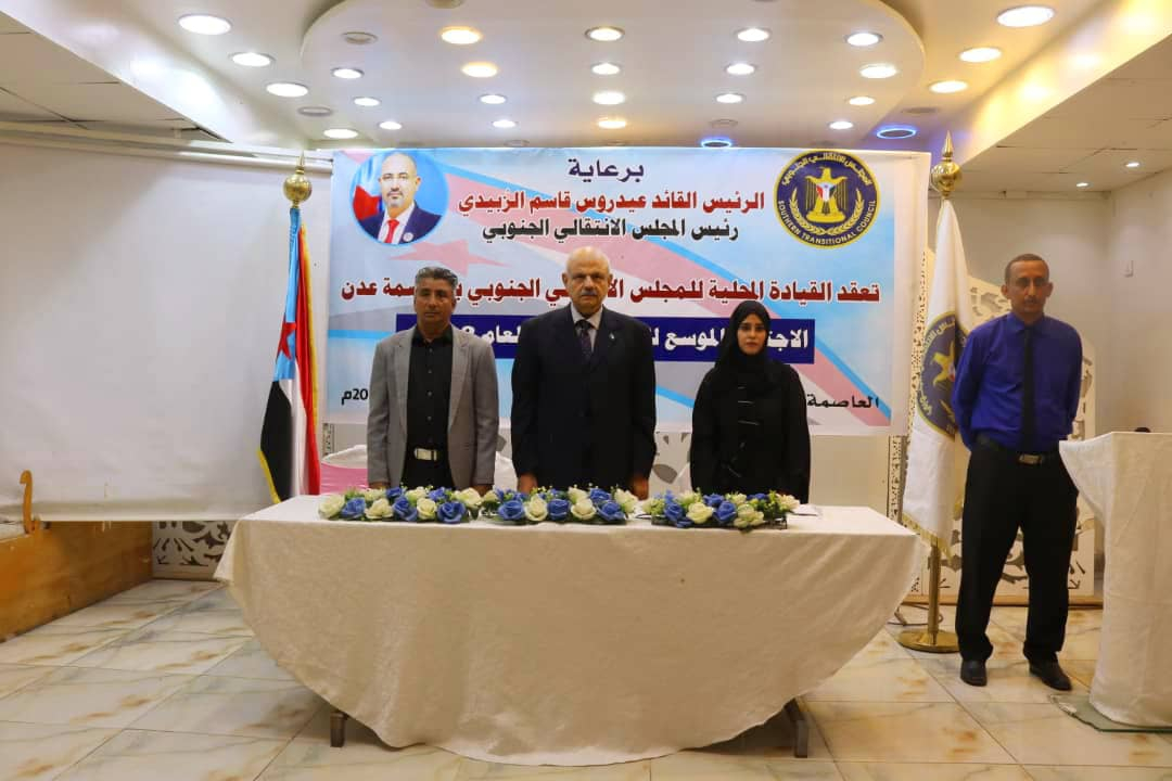 عقدت القيادة المحلية للمجلس الانتقالي الجنوبي بالعاصمة عدن ، اليوم السبت، اجتماعها العام الموسع للفصل الثالث من العام الجاري 2022، برئاسة الأستاذ عصام عبده علي، القائم بمهام رئيس تنفيذية انتقالي العاصمة.