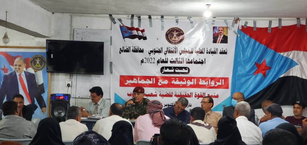 عقدت القيادة المحلية للمجلس الانتقالي الجنوبي في محافظة الضالع، اليوم السبت، اجتماعها الموسع للفصل الثالث للعام 2022، برئاسة العميد عبدالله مهدي سعيد رئيس القيادة المحلية لانتقالي المحافظة.