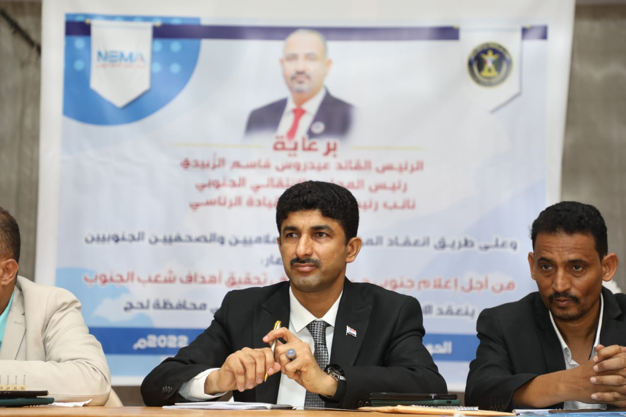 وفي مستهل اللقاء الذي حضره عدد كبير من الإعلاميين والصحافيين من جميع مديريات المحافظة، ألقى الدكتور باسم منصور، رئيس الدائرة الإعلامية بالأمانة العامة لهيئة رئاسة المجلس الانتقالي، عضو اللجنة التحضيرية لمؤتمر الصحافيين والإعلاميين الجنوبيين، رئيس اللجنة العلمية، كلمة اللجنة الإشرافية نقل في مستهلها للحضور تحايا الرئيس القائد عيدروس الزُبيدي، رئيس المجلس الانتقالي.