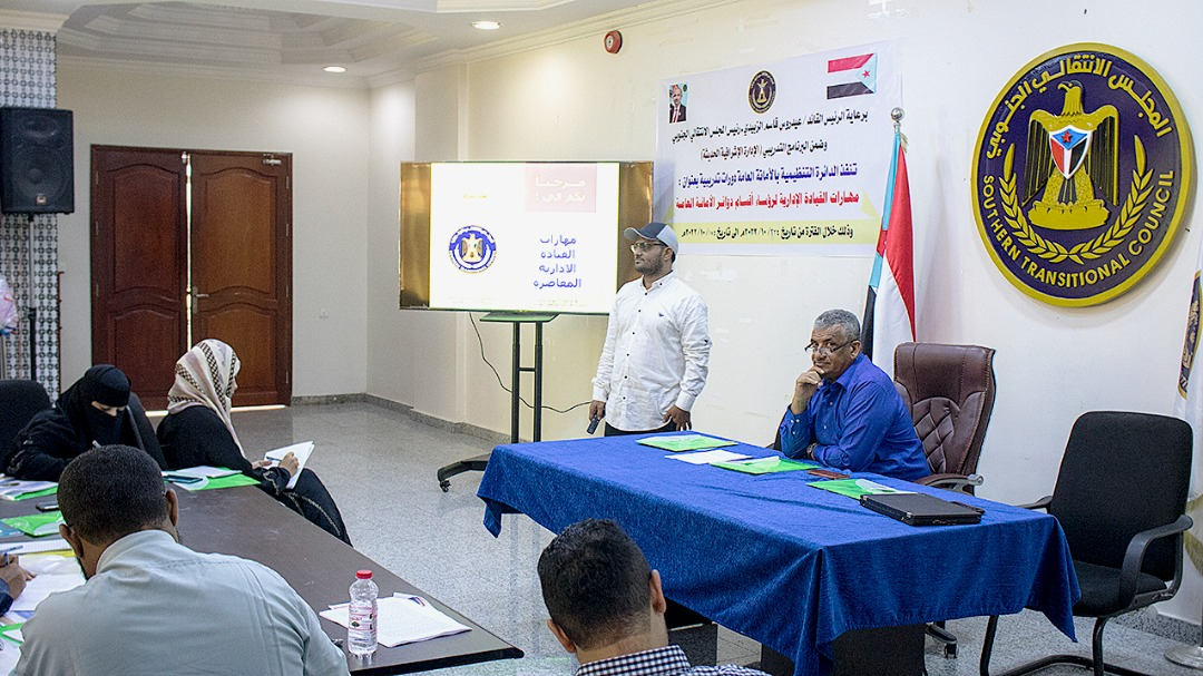دشنت الدائرة التنظيمية في الأمانة العامة لهيئة رئاسة المجلس الانتقالي الجنوبي، اليوم الأحد، دوراتها التدريبية في "مهارات القيادة الإدارية" لرؤساء اقسام دوائر الأمانة.