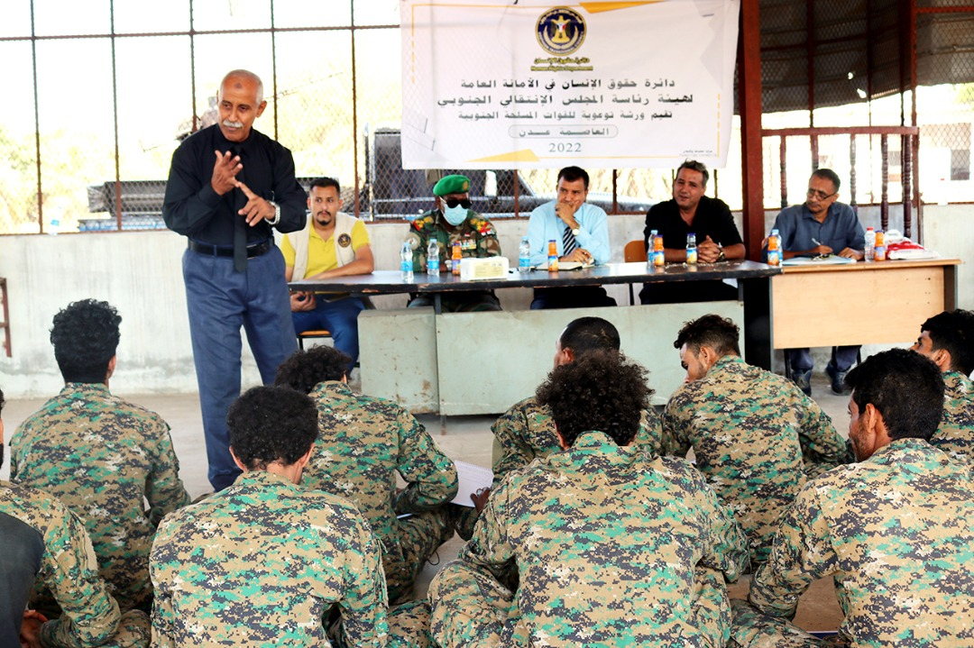 نظمت دائرة حقوق الانسان في الأمانة العامة لهيئة رئاسة المجلس الانتقالي الجنوبي، اليوم الأربعاء، ورشة توعوية لأفراد عمليات قوات الطوارئ في العاصمة عدن.