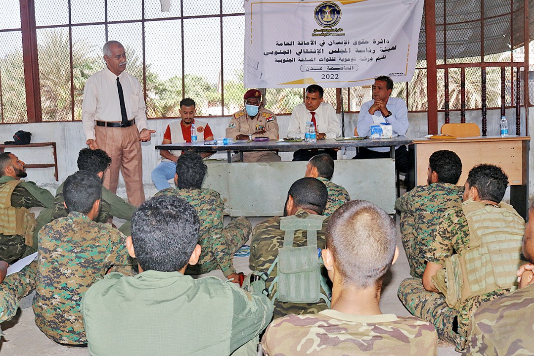 اختتمت دائرة حقوق الانسان في الأمانة العامة لهيئة رئاسة المجلس الانتقالي الجنوبي، اليوم الخميس، الورشة التوعوية التي نظمتها لقوات الطوارئ التابعة لإدارة أمن العاصمة عدن.