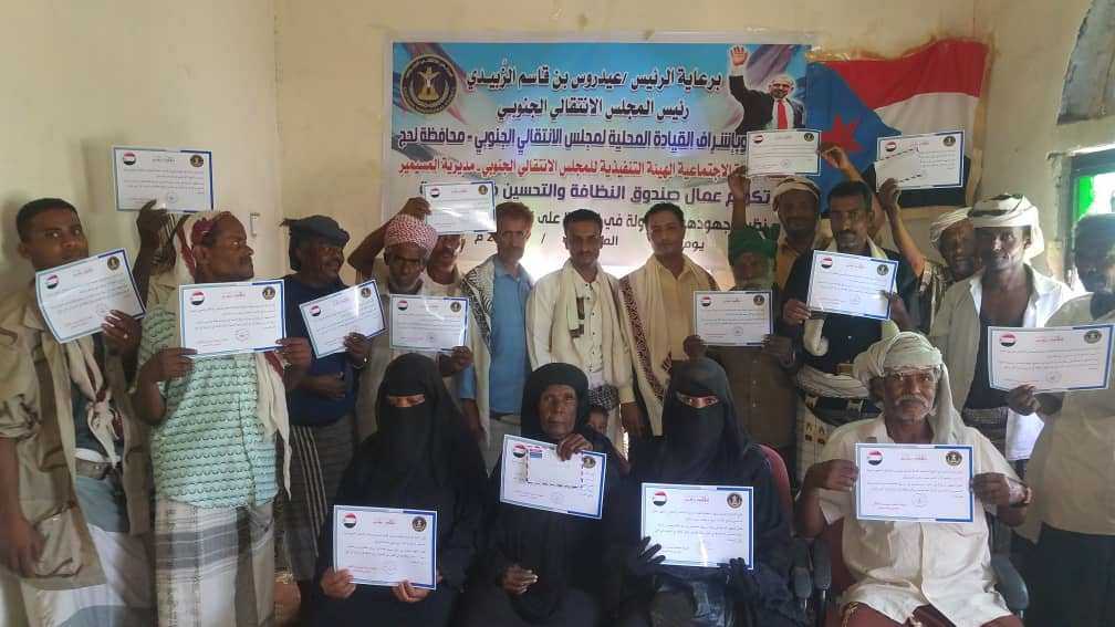 كرمت الإدارة الاجتماعية بالهيئة التنفيذية للمجلس الانتقالي الجنوبي في مديرية المسيمير بمحافظة لحج، اليوم الثلاثاء، عمال وعاملات صندوق النظافة وتحسين المدينة بالمديرية.