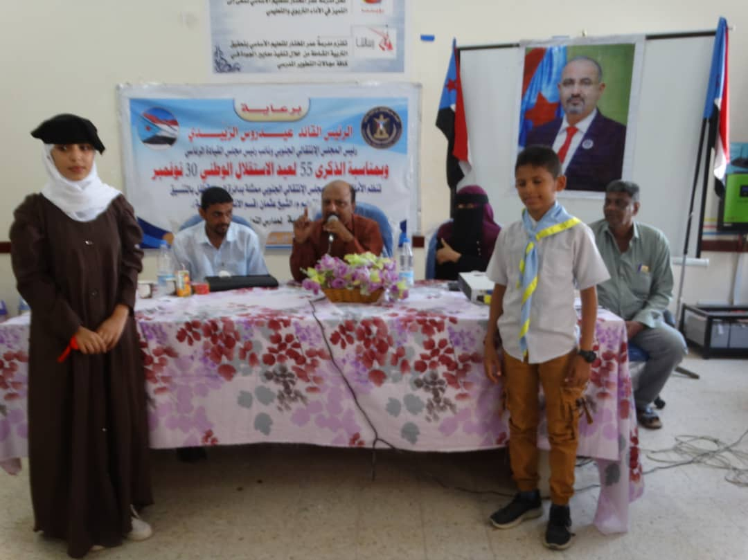 دشنت القيادة المحلية للمجلس الانتقالي الجنوبي في مديرية الشيخ عثمان، بالعاصمة عدن، اليوم الخميس، مسابقة الاغنية الوطنية لمدراس التعليم الأساسي بالمديرية، برعاية الرئيس القائد عيدروس بن قاسم الزُبيدي، رئيس المجلس الانتقالي الجنوبي.