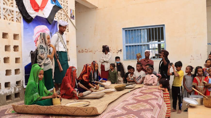 وعلى هامش المعرض، تم تنظيم حفل فني تضمن عدد من اللوحات الفنية والرقص الشعبي والاهازيج الشعبية والفلكور التراثي لمديرية ميفعة نالت استحسان الحاضرين.
