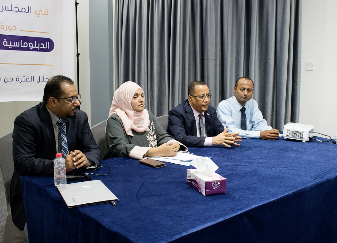 نظم مركز التدريب والتأهيل في المجلس الانتقالي الجنوبي، اليوم الأحد، في العاصمة عدن، دورة تدريبية بعنوان" الدبلوماسية والمفاوض المحترف" لعدد من كوادر مختلف هيئات المجلس الانتقالي، بحضور عضوي هيئة رئاسة المجلس، الدكتور ناصر الخبجي، رئيس وحدة شؤون المفاوضات، والدكتورة سهير علي احمد.