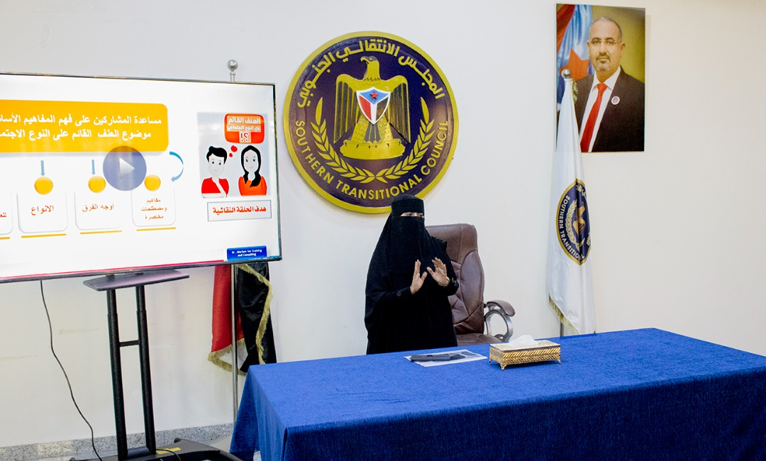 نظمت دائرة حقوق الإنسان بالأمانة العامة لهيئة رئاسة المجلس الانتقالي الجنوبي، اليوم الإثنين، في العاصمة عدن، حلقةُ نقاشيةُ بالتزامن مع حملة الستة عشر يوماً لمناهضة العنف القائم على النوع الاجتماعي، بعنوان " العنف ضد النوع الاجتماعي"
