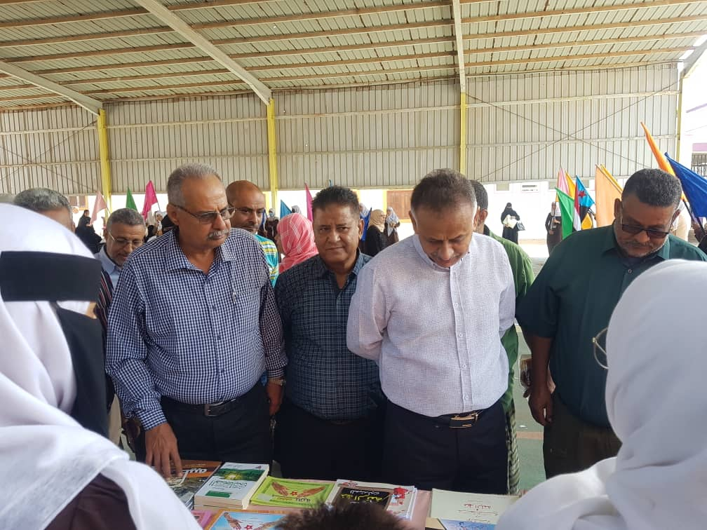وعقب ذلك افتتح الدكتور علي عوض الصلاحي رئيس تنفيذية انتقالي المعلا والاستاذ عبدالرحيم جاوي مدير عام المديرية، شريط معرض للكتاب وتدشين افتتاح المكتبة المدرسية للثانوية.
