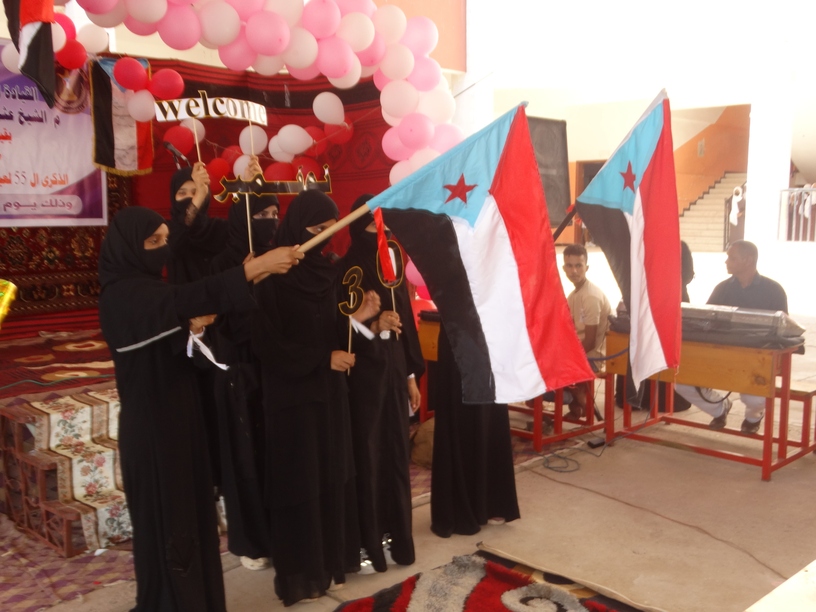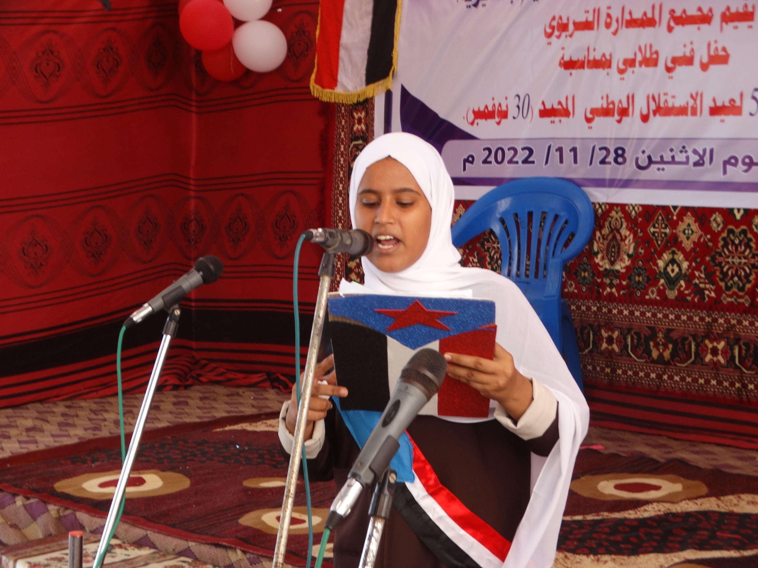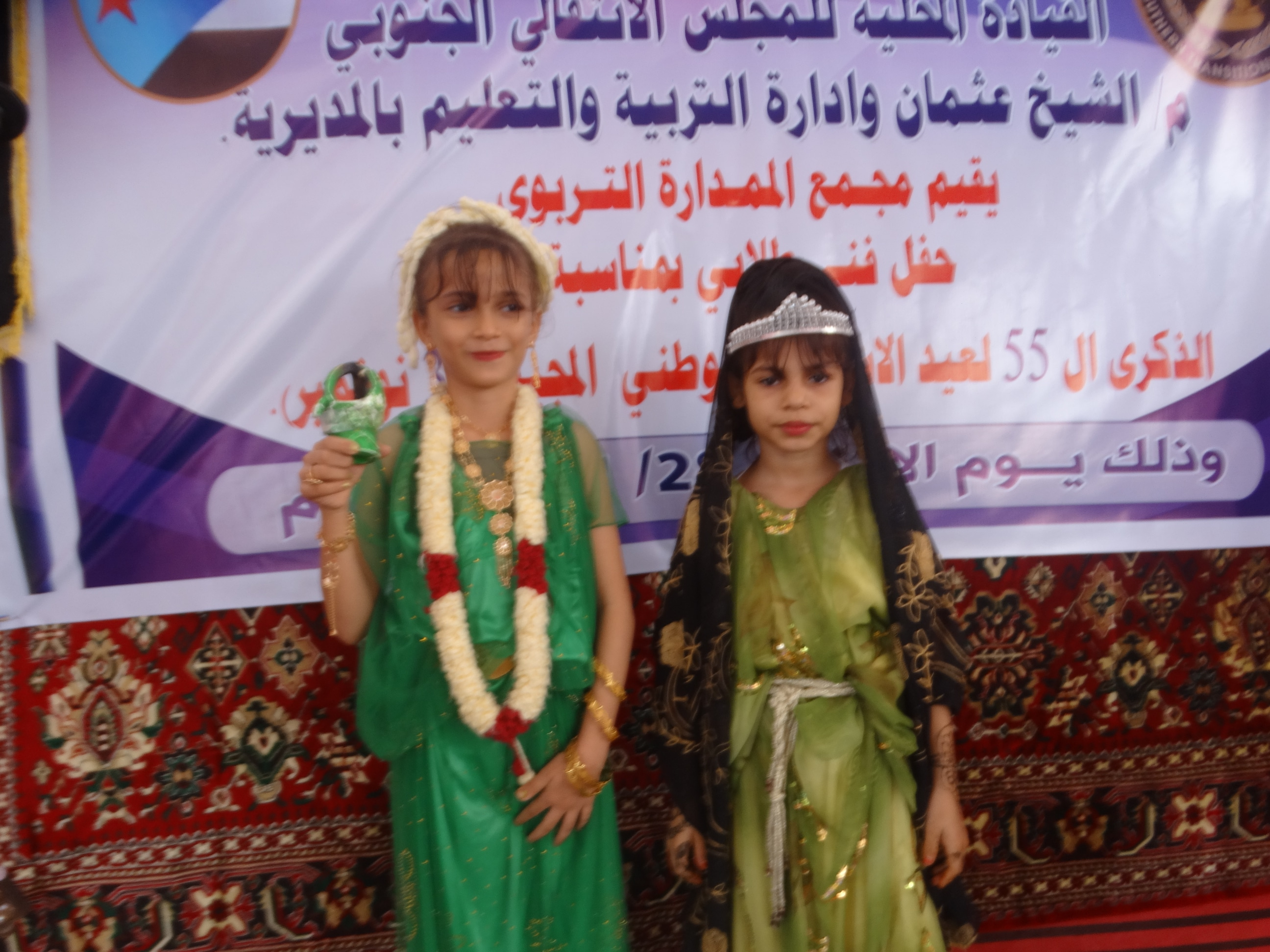 أقام مجمع الممدارة التربوي للبنات، اليوم الاثنين، احتفالية فنية طلابية بمناسبة الذكرى الـ 55 لعيد الاستقلال الوطني ألمجيد الثلاثين من نوفمبر المجيد، برعاية القيادة المحلية للمجلس الانتقالي بمديرية الشيخ عثمان بالعاصمة عدن.