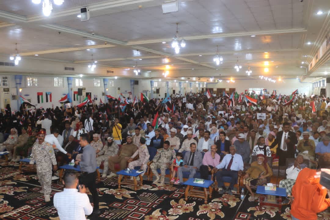 وأكد الكثيري في كلمته، أن الجنوب، اليوم من شرقه إلى غربه يقف على قلب رجل واحد، من أجل خلاصه واستكمال تحرير أراضيه، وإقامة دولته المدنية الفيدرالية، التي تعز ولاتذل، تجمع ولاتفرق.