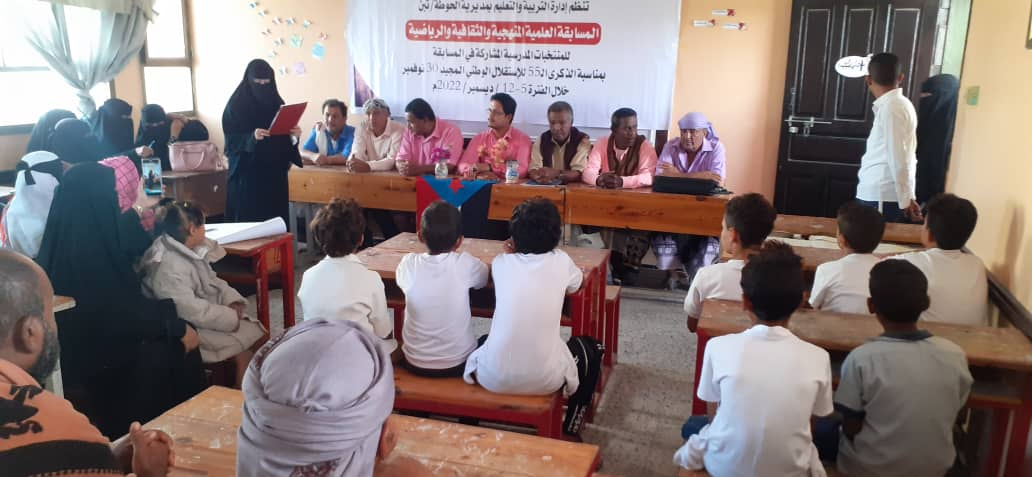 وأكد الغزالي خلال التدشين أن هذه المسابقة تأتي ضمن جملة من الأنشطة العلمية المنهجية والثقافية والرياضية التي أقر انتقالي لحج تنفيذها بين طلاب المدارس بالمديريتين بمناسبة الذكرى الـ 55 لعيد الاستقلال الوطني 30 نوفمبر.