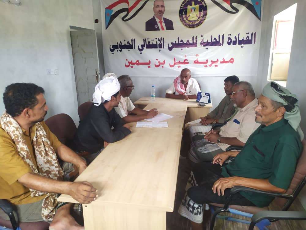 عقدت الهيئة التنفيذية للقيادة المحلية للمجلس الانتقالي الجنوبي في مديرية غيل بن يمين بمحافظة حضرموت، اليوم الخميس، اجتماعها الدوري لشهر نوفمبر، برئاسة أحمد سالم باجوه، رئيس الهيئة.