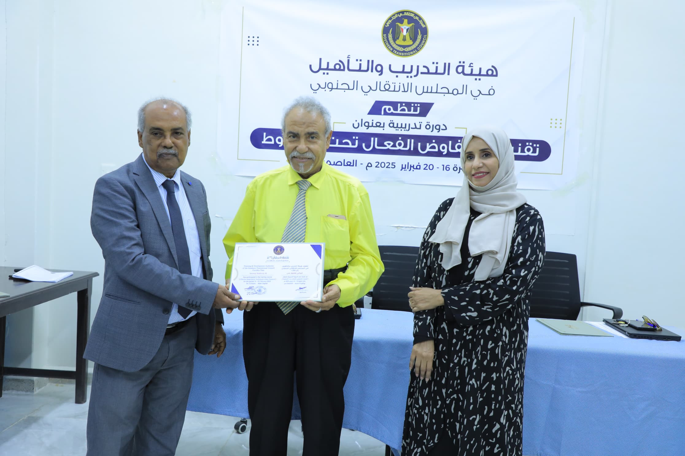 اختتمت هيئة التدريب والتأهيل المساعدة لهيئة رئاسة المجلس الانتقالي الجنوبي، اليوم الخميس، دورة تدريبية بعنوان "تقنيات التفاوض الفعّال تحت الضغوط"، وذلك في العاصمة عدن.