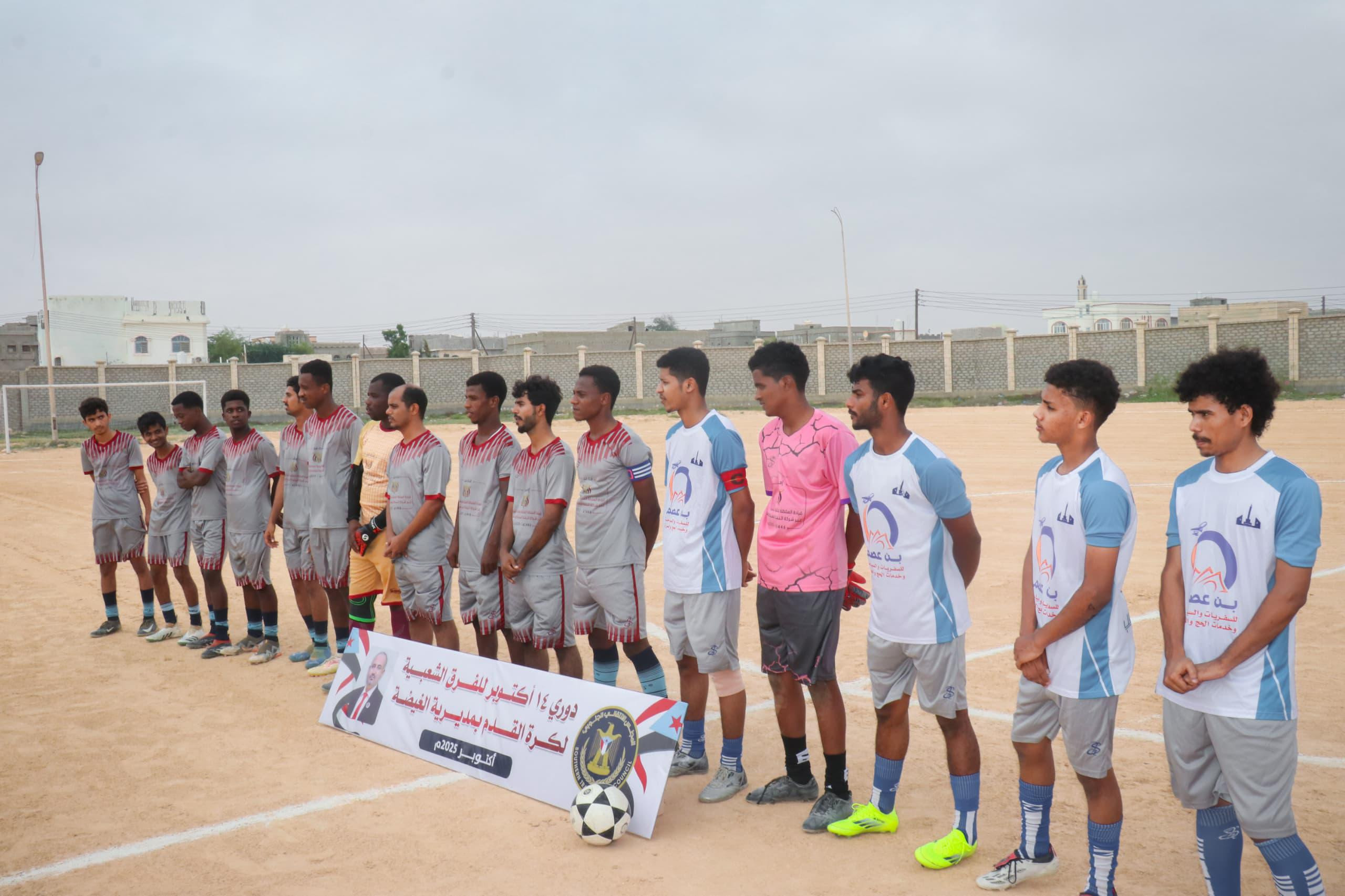وخلال المباراة الافتتاحية التي حضرها رئيس تنفيذية انتقالي المحافظة، عبدالرحيم الصادق، وأقيمت على ملعب الكابتن علي البرغي، خطف فريق ضبوت بطاقة التأهل الأولى إلى الدور التالي بعد فوزه على فريق هلال الجحي بخماسية نظيفة.