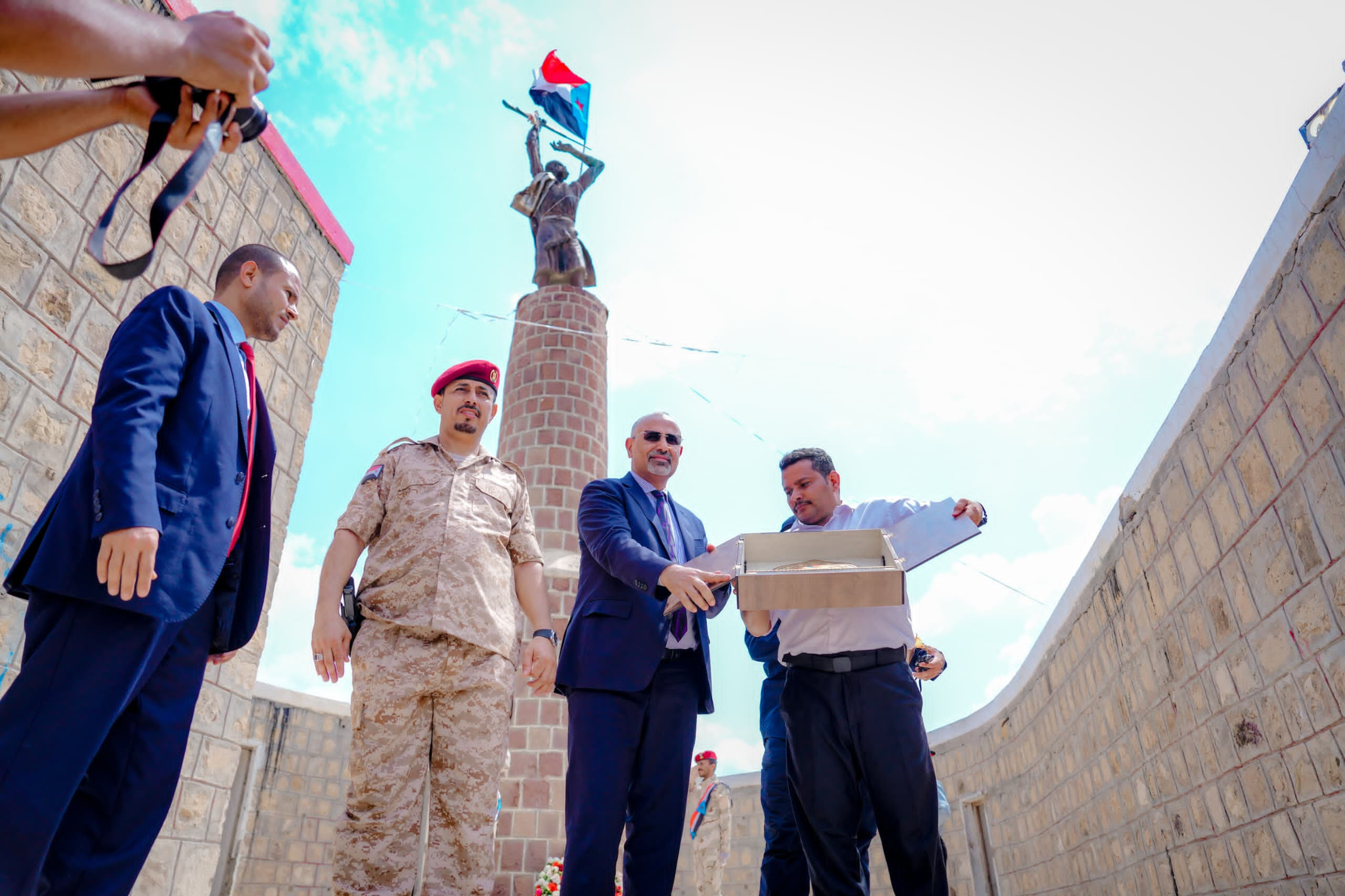 وخلال الزيارة، وضع الرئيس الزُبيدي إكليلًا من الزهور على نصب الشهيد البطل راجح بن غالب لبوزة، مؤسس شرارة الثورة الجنوبية ضد الاستعمار البريطاني، وقرأ الفاتحة على روحه الطاهرة وأرواح الشهداء الأبرار الذين رووا بدمائهم الزكية تراب الوطن في سبيل الحرية والاستقلال.