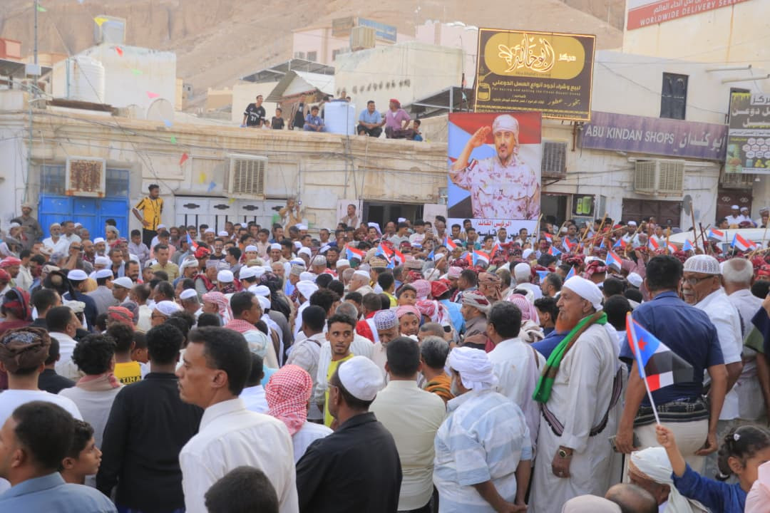 وشارك في إحياء ريحة ختام الحولية جمع غفير من محبي لعبة الشبواني، وردد المشاركون خلالها شعارات وأهازيج تؤكد تمسك أبناء حضرموت بهويتهم الجنوبية، كما رفعت أعلام دولة الجنوب وصور الرئيس القائد عيدروس الزُبيدي، رئيس المجلس الانتقالي الجنوبي.