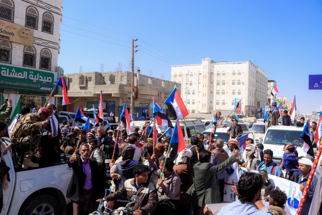 انتقالي ميفعة ينظم مسيرة جماهيرية احتفالاً بانتصارات القوات الجنوبية في عارين وحضرموت