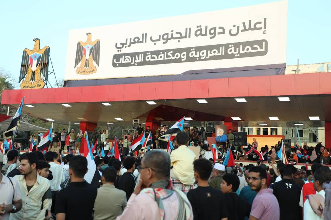 وجدد المعتصمون تفويضهم الشعبي للمجلس الانتقالي الجنوبي باعتباره الممثل الوحيد للقضية الوطنية، مؤكدين أن المرحلة المقبلة تحتاج إلى موقف موحد خلف الرئيس القائد عيدروس الزُبيدي، مرددين بشعار واضح: "شعب الجنوب يطالب بإعلان الدولة"، في رسالة قوية مفادها أن الشعب يقف خلف قيادته ويطالب بخطوات تتناسب مع حجم التضحيات والانتصارات التي تحققت.