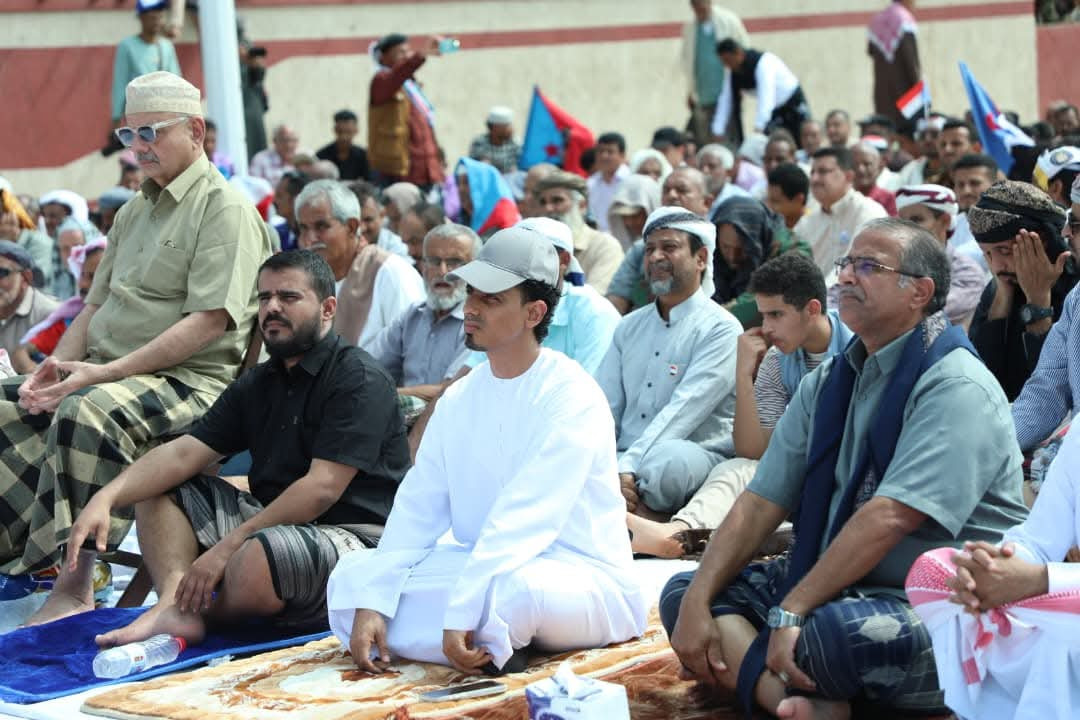 وتقدم جموع المصليين عضو هيئة رئاسة المجلس الانتقالي الجنوبي، رئيس تنفيذية انتقالي العاصمة عدن، مؤمن السقاف، ووزير الشؤون الاجتماعية والعمل، الدكتور محمد سعيد الزعوري، ونائب رئيس الجمعية الوطنية، عصام عبده علي، وعدد من القيادات العسكرية والأمنية والشخصيات الاجتماعية.