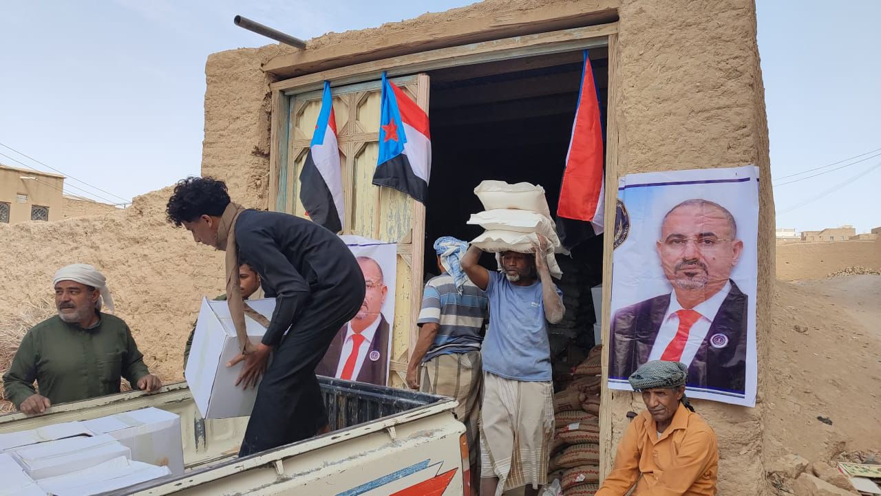 دشّنت القيادة المحلية للمجلس الانتقالي الجنوبي في مديرية حورة ووادي العين بمحافظة حضرموت، اليوم السبت، عملية توزيع السلال الغذائية المقدَّمة من الرئيس القائد عيدروس الزُبيدي، رئيس المجلس الانتقالي الجنوبي، للأسر الأشد فقراً بالمديرية.