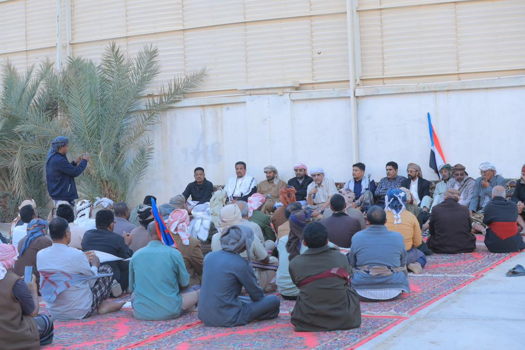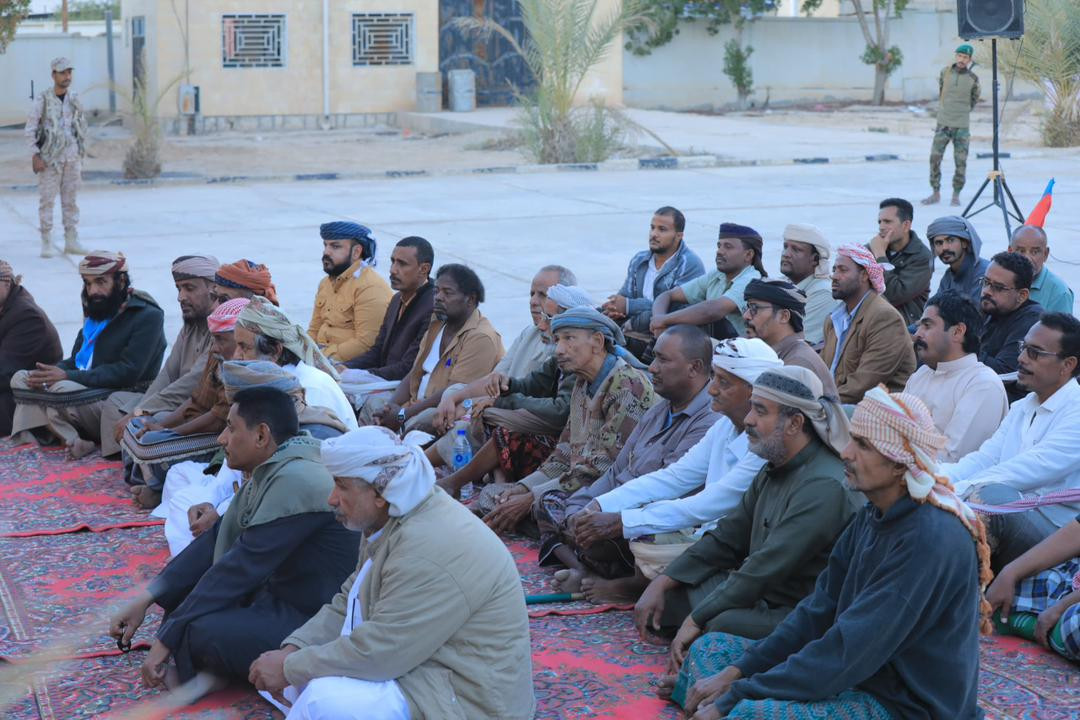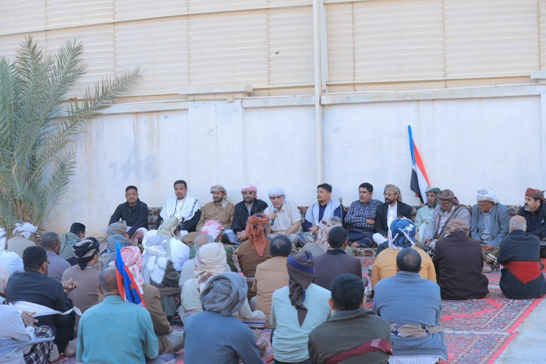 حضر اللقاء الشيخ كرامة بن الصقير الكثيري نائب رئيس الهيئة التنفيذية المساعدة للمجلس الانتقالي الجنوبي لشؤون مديريات الوادي والصحراء والشيخ طالب باجري رئيس كتلة الوادي في الجمعية الوطنية والعميد سعيد أحمد المحمدي عضو الجمعية الوطنية.