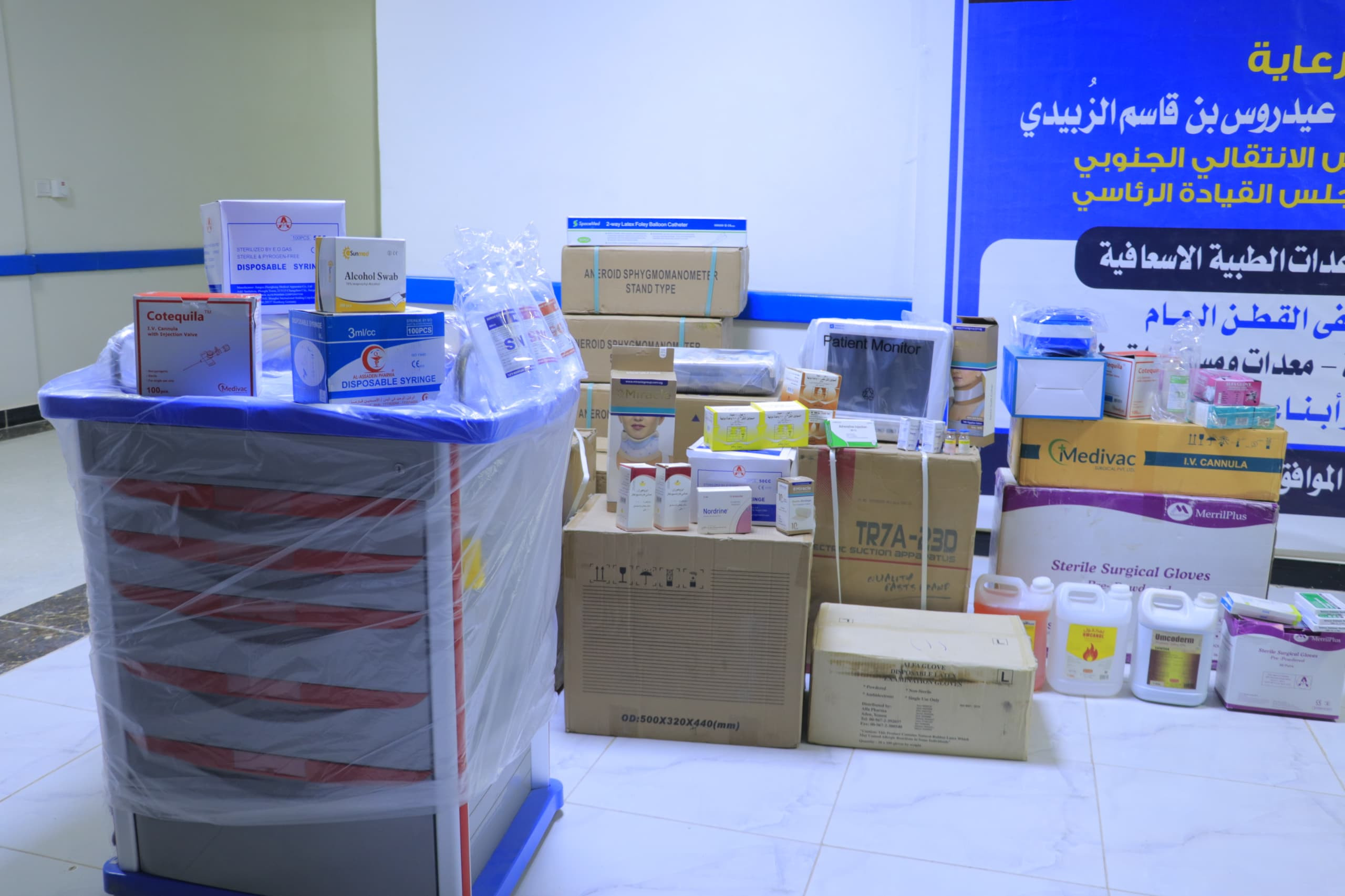 مقدمة من الرئيس الزُبيدي.. انتقالي وادي وصحراء حضرموت يسلّم مساعدات طبية لمستشفى القطن العام
